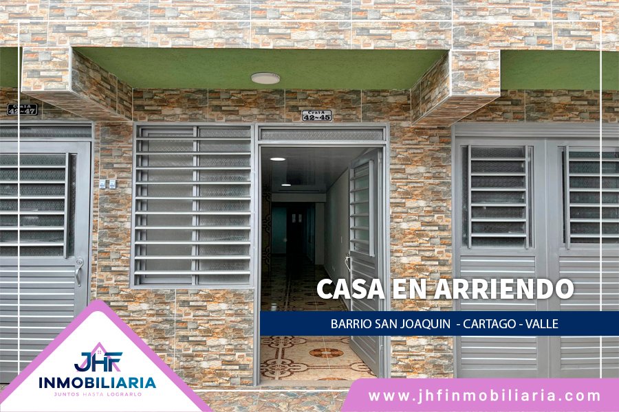Casa en arriendo, esta ubicado en Cartago, Valle del Cauca, en el barrio san Joaquín Consta de: 2 habitaciones, 2 cosets,2 baños, sala comedor, cocina sencilla, zona de lavado, pisos en cerámica, espacio para moto. SERVICIOS INCLUIDOS!😉.