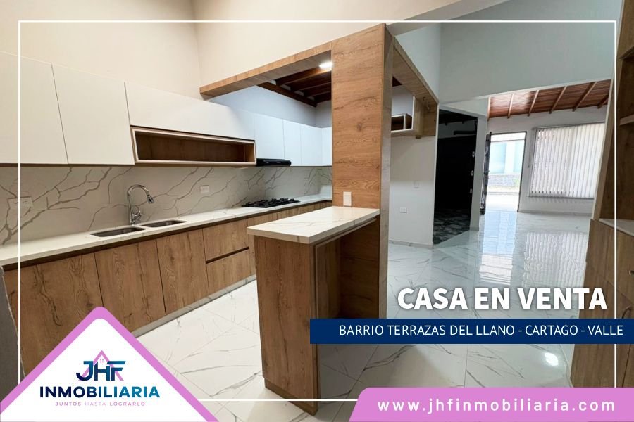 Casa en venta ubicada en la ciudad de Cartago, Valle, en el barrio terrazas del llano. Consta de un área de 145 mts2, 3 habitaciones, 1 closet, 2 baños:1 baño con jacuzzi, sala comedor, cocina integral, garaje eléctrico y zona vehicular.