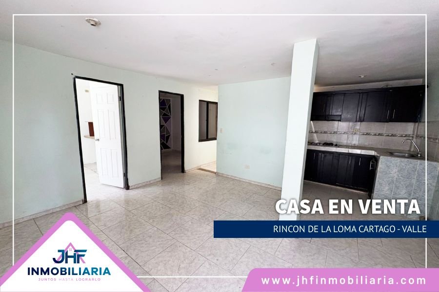 Casa en venta ubicada en la ciudad de Cartago, Valle, en el barrio rincon de la loma. Consta de un área de 72 mts2, estrato 3, tres pisos, propiedad para generar renta: